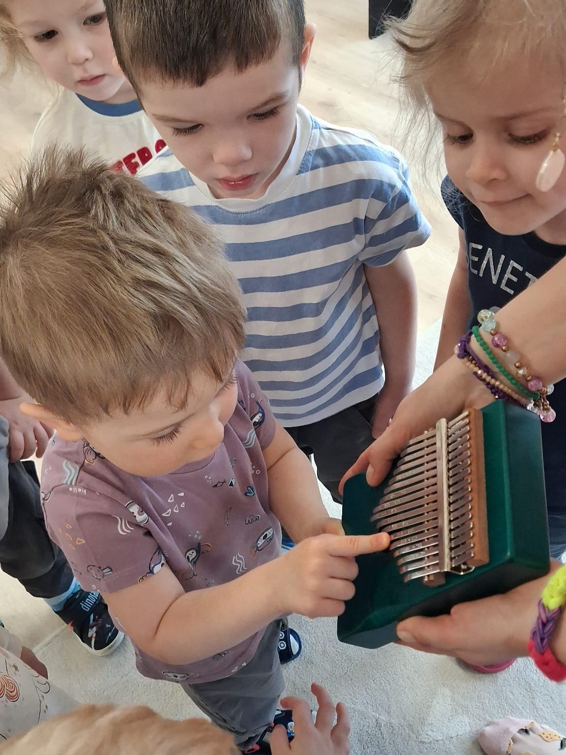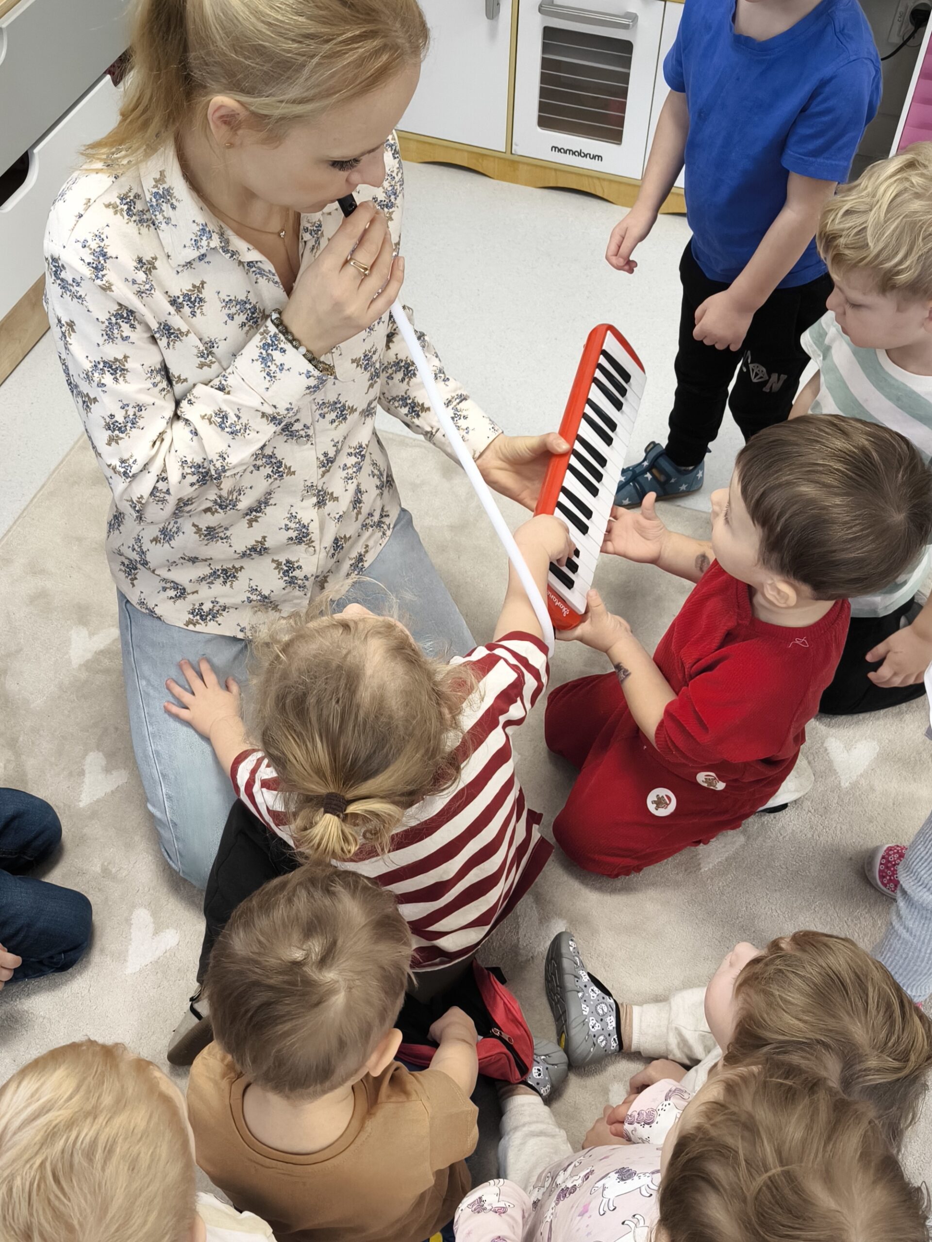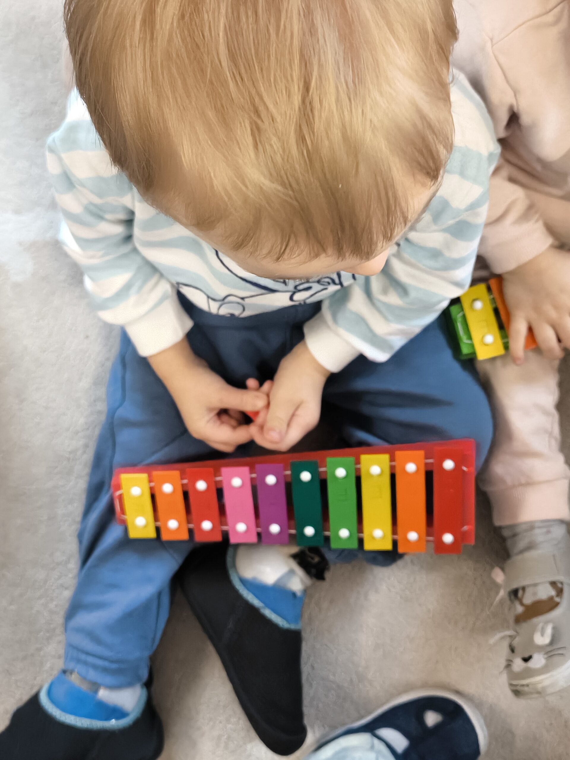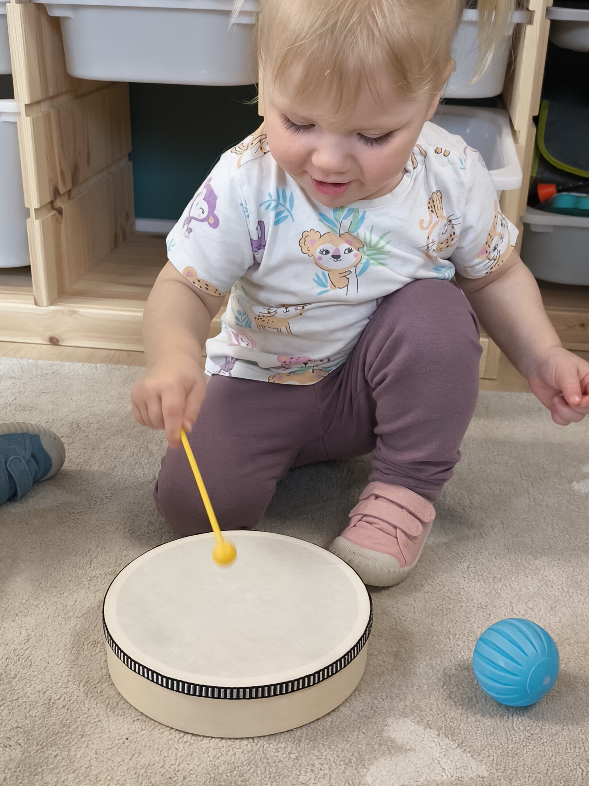 • Instrumenty muzyczne:  Tamburyn, grzechotka, dzwonki, flet, pianino. Dzieci mogą grać na nich, eksperymentować z dźwiękami i rozwijać słuch muzyczny.