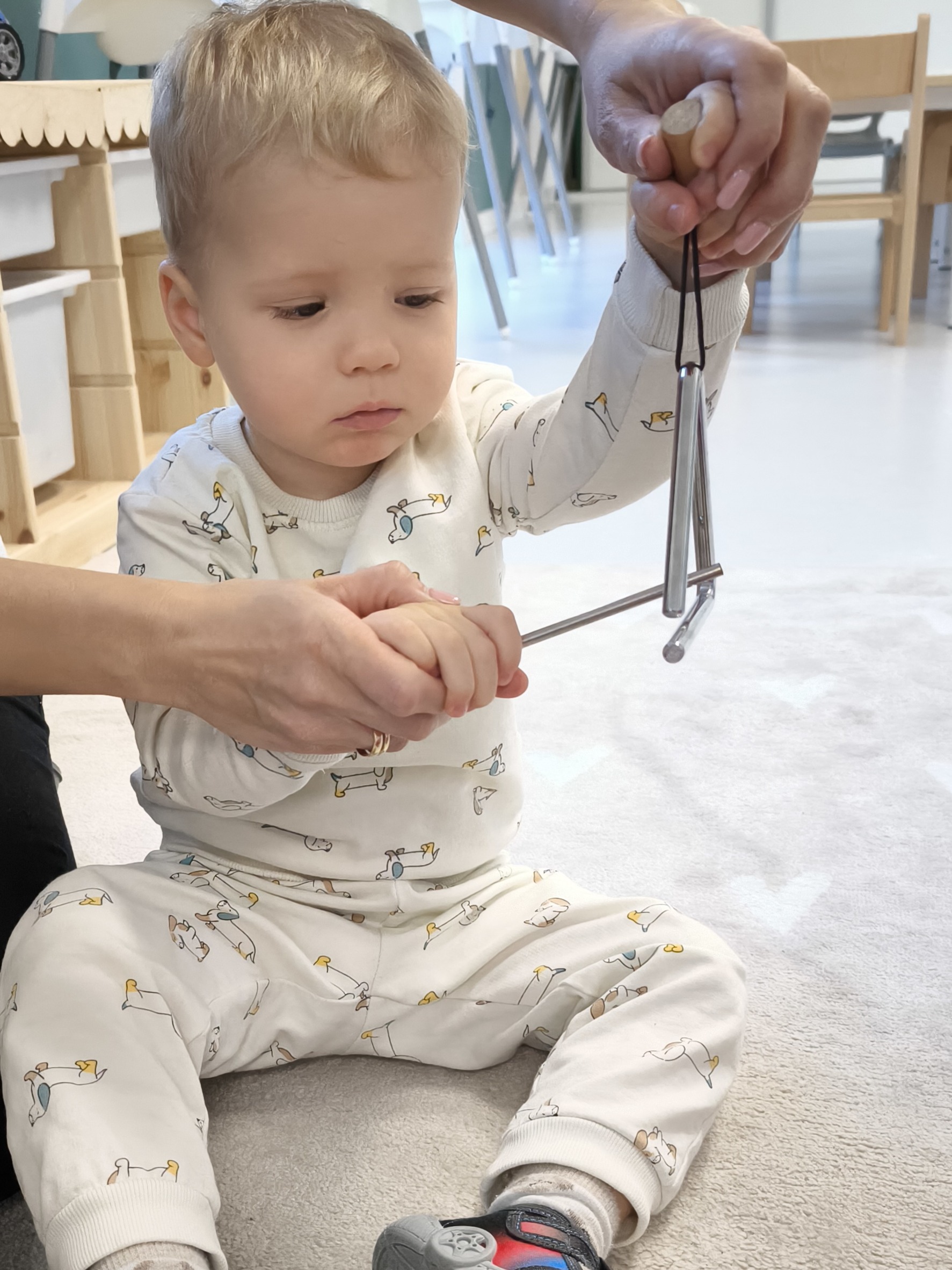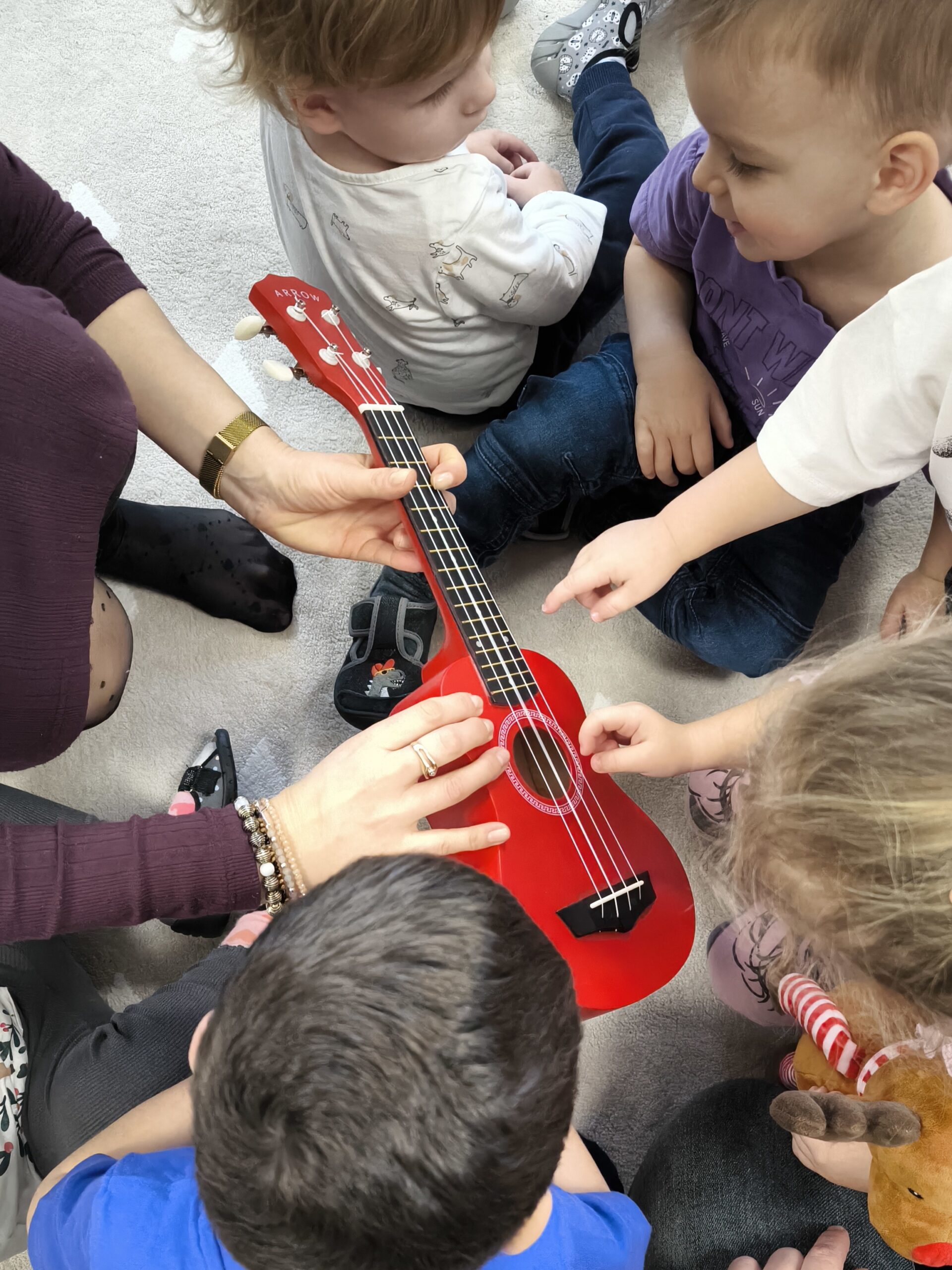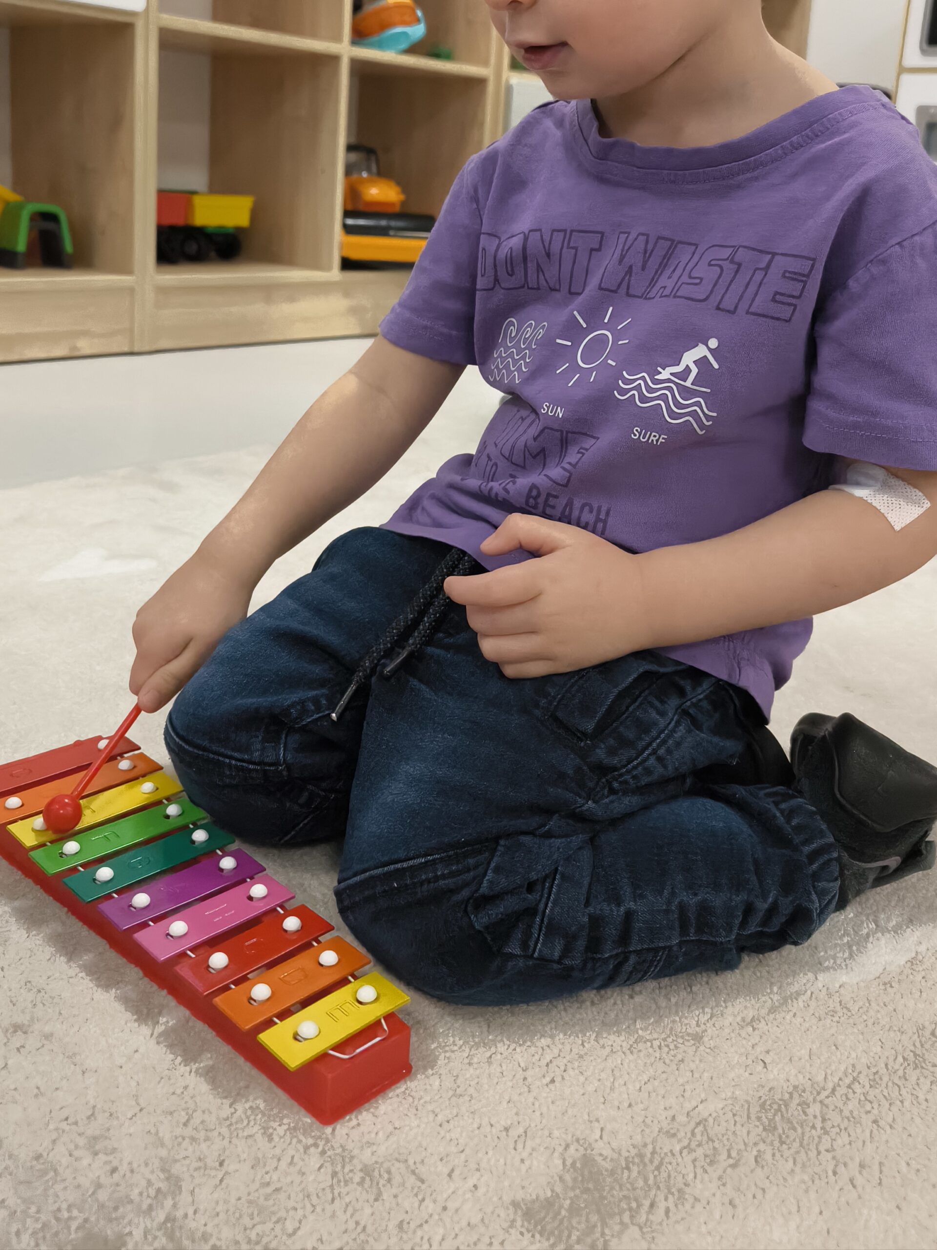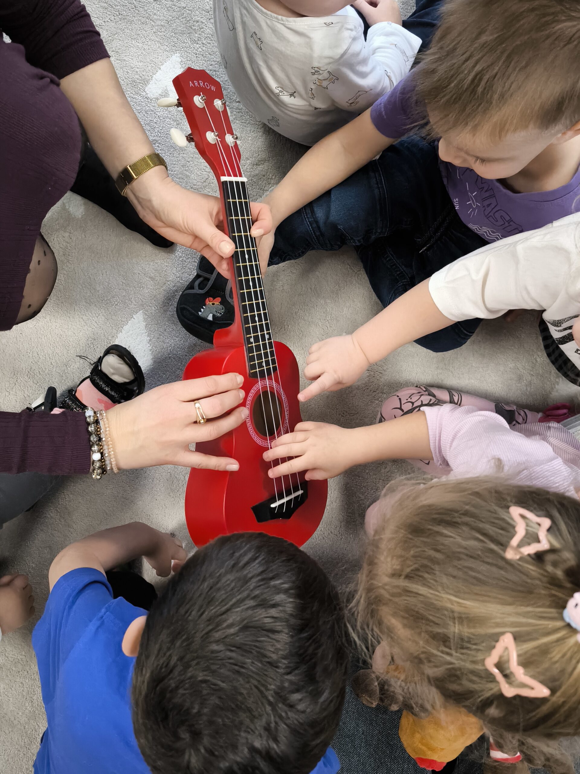 • Instrumenty muzyczne:  Tamburyn, grzechotka, dzwonki, flet, pianino. Dzieci mogą grać na nich, eksperymentować z dźwiękami i rozwijać słuch muzyczny.