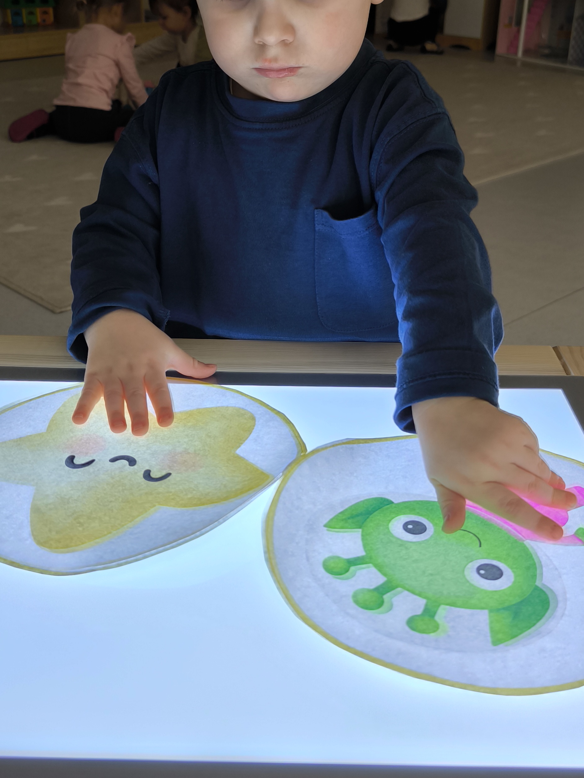to interaktywne zabawki, które stymulują zmysł wzroku i słuchu. Tuby świetlne zmieniają kolory, a panele świetlne reagują na dotyk, wydając dźwięki i zmieniając barwy. Zabawy z tubami i panelami świetlnymi rozwijają ciekawość, spostrzegawczość oraz zdolność kojarzenia przyczynowo-skutkowego.