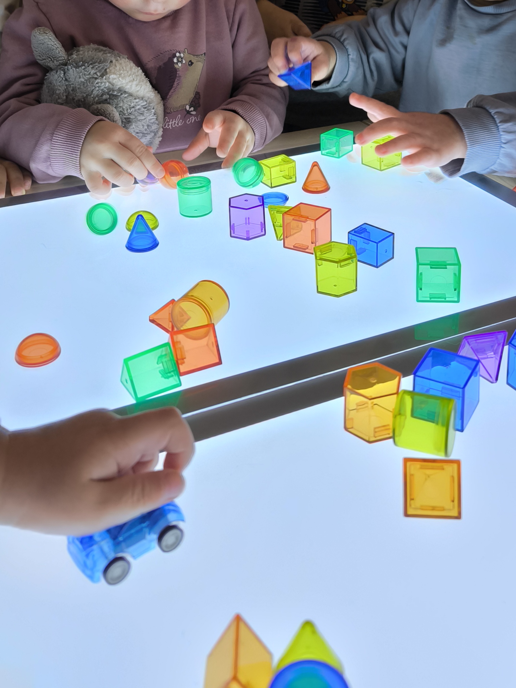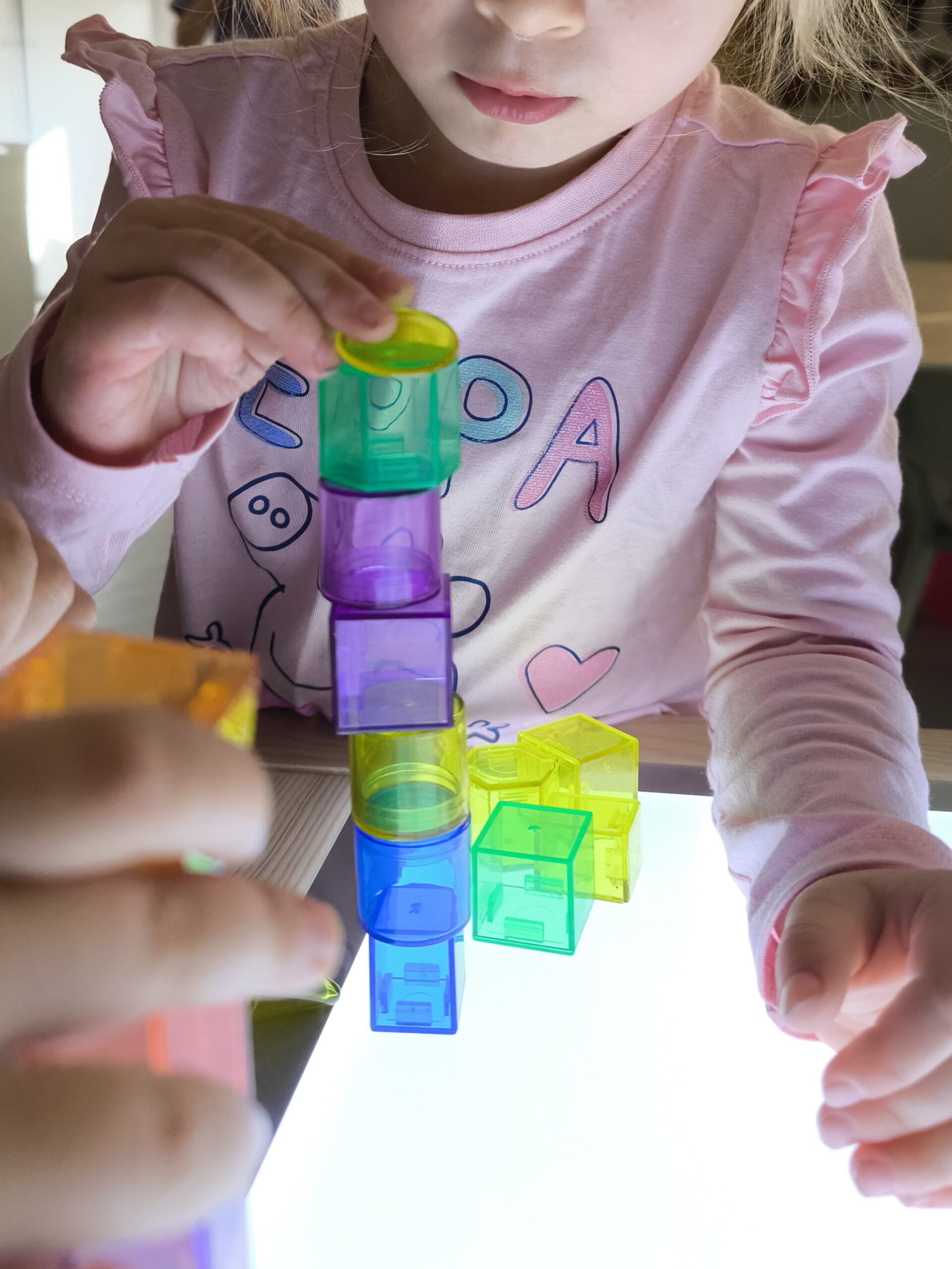 • Tuby i panele świetlne: Zmieniające kolory, reagujące na dotyk, wydające dźwięki. To świetne zabawki, które pobudzają ciekawość i spostrzegawczość.