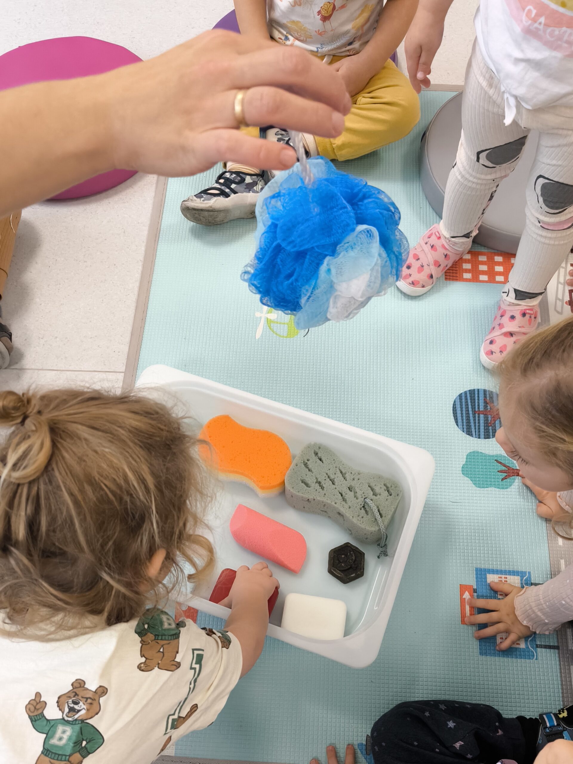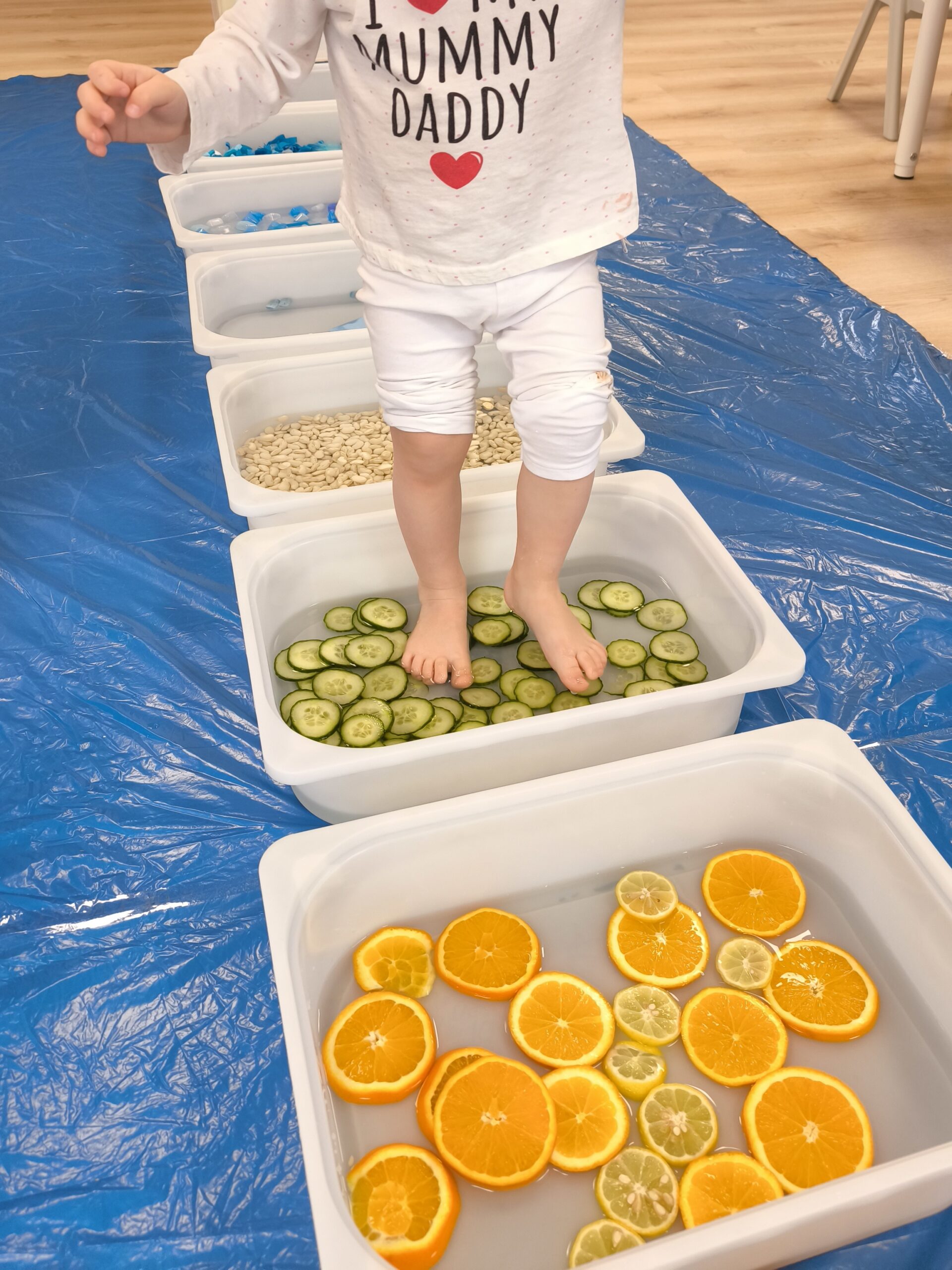 Przykłady zabaw sensorycznych wykorzystywanych w naszym żłobku.