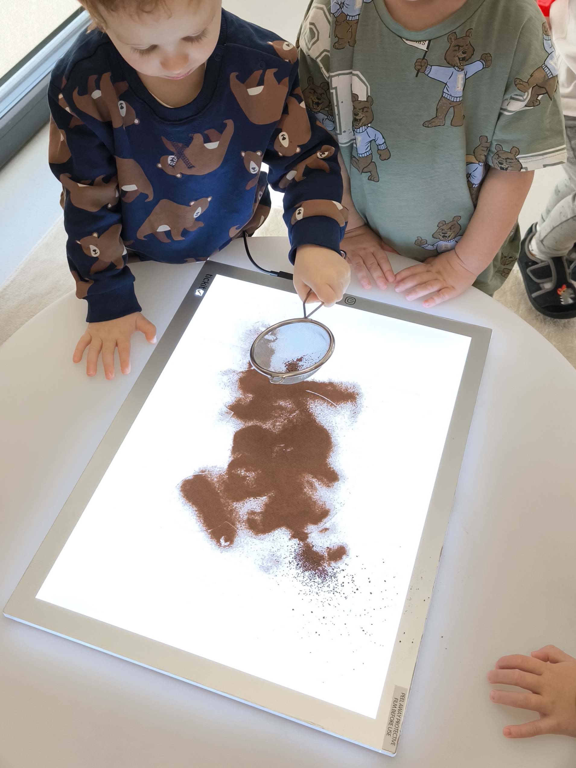 to klasyczna forma aktywności sensorycznej, która nigdy nie wychodzi z mody. W Sensomisiach, dzieci mają możliwość bawić się w piasku, wodzie, ryżu, kaszy, a także w innych sypkich materiałach. Zabawy w masach rozwijają zmysł dotyku, koordynację ruchową oraz wyobraźnię.