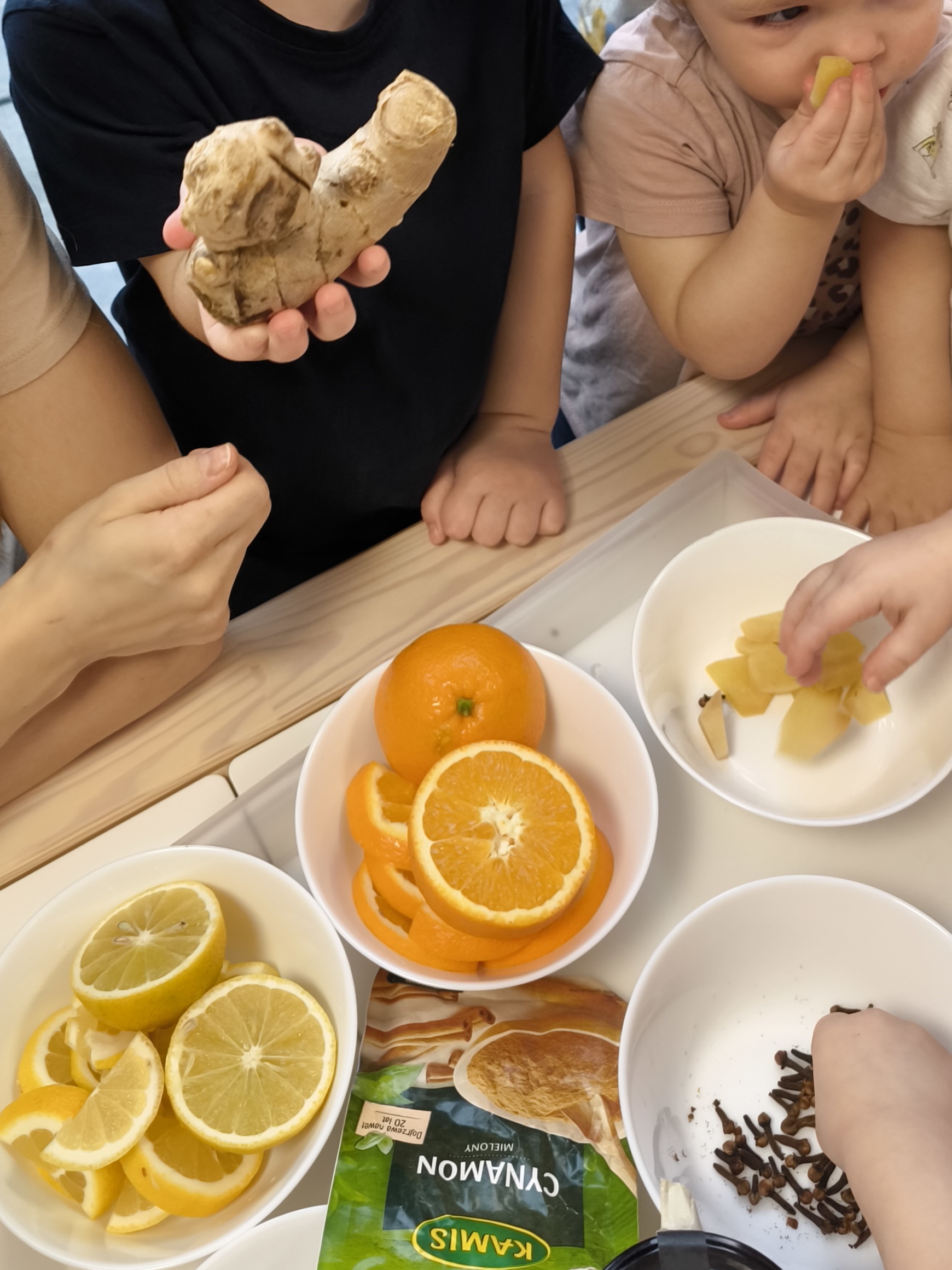 • Zioła i przyprawy:  Bazylia, oregano, tymianek, cynamon, goździki. Dzieci mogą je wąchać, dotykać, a nawet próbować.