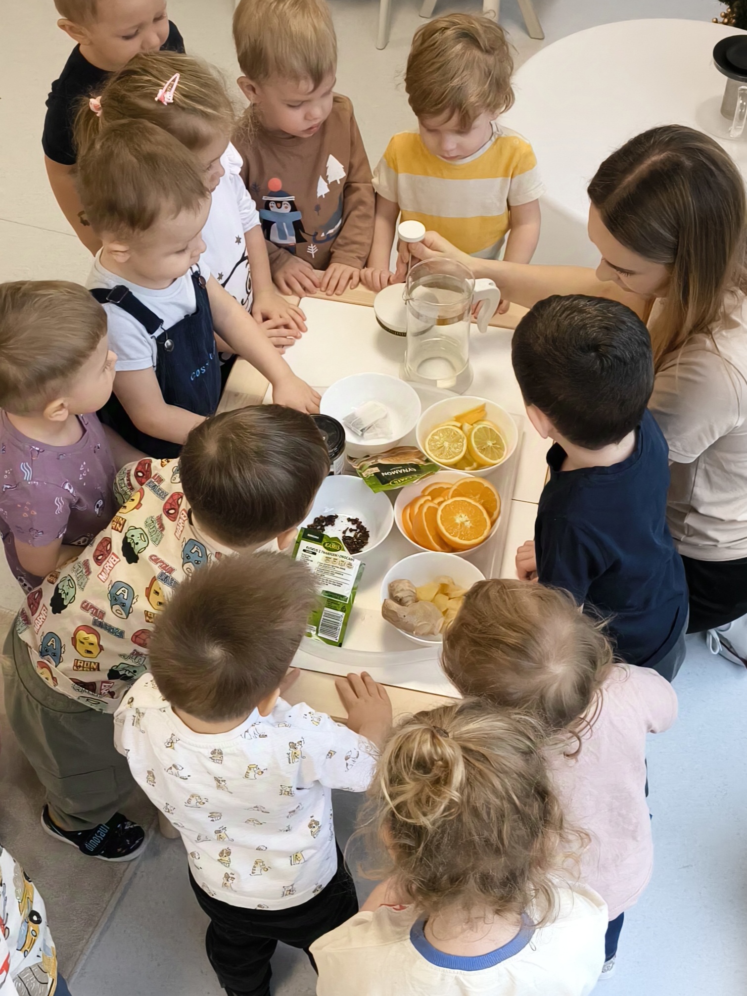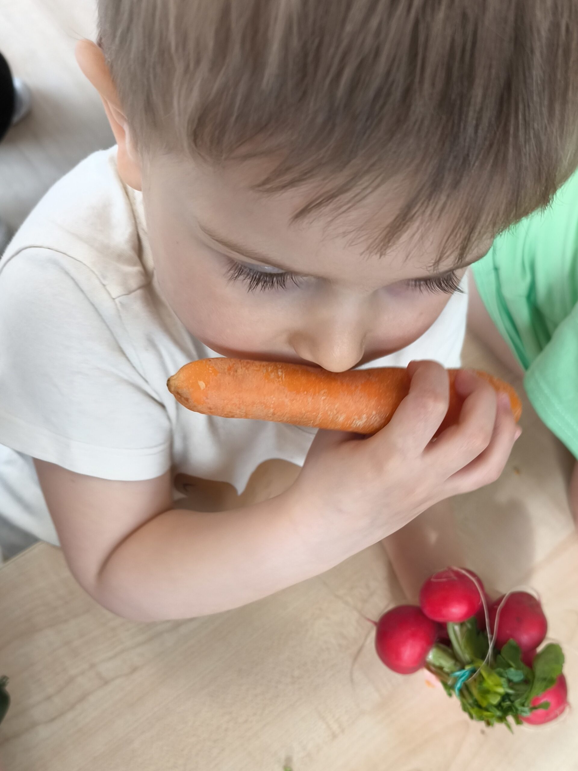 • Owoce i warzywa: O różnych smakach i zapachach. Dzieci mogą je degustować, rozpoznawać i nazywać.