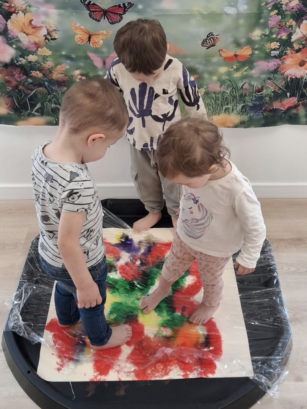 to świetna zabawa, która pozwala dzieciom eksperymentować z różnymi fakturami i kolorami. W Sensomisiach, malujemy nie tylko na kartkach, ale również na folii, tkaninach, a nawet na dużych powierzchniach, takich jak ściany czy podłogi. Dzięki temu, dzieci mają możliwość wyrażania swojej kreatywności w niekonwencjonalny sposób.
